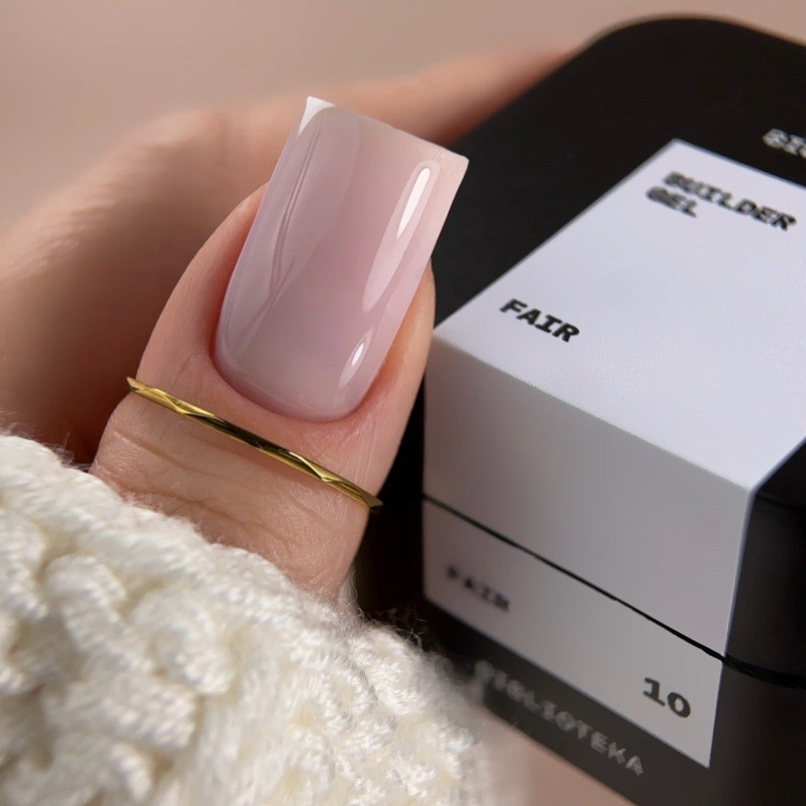 BUILDER GEL № 10 Fair — a milky-pink shade with a sense of lightness, like an airy marshmallow. A delicate color with an effect of purity and softness — warm, natural, and slightly creamy.