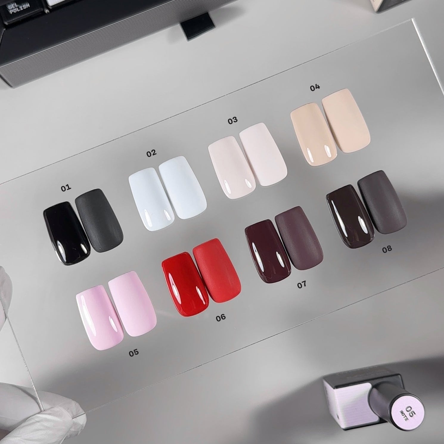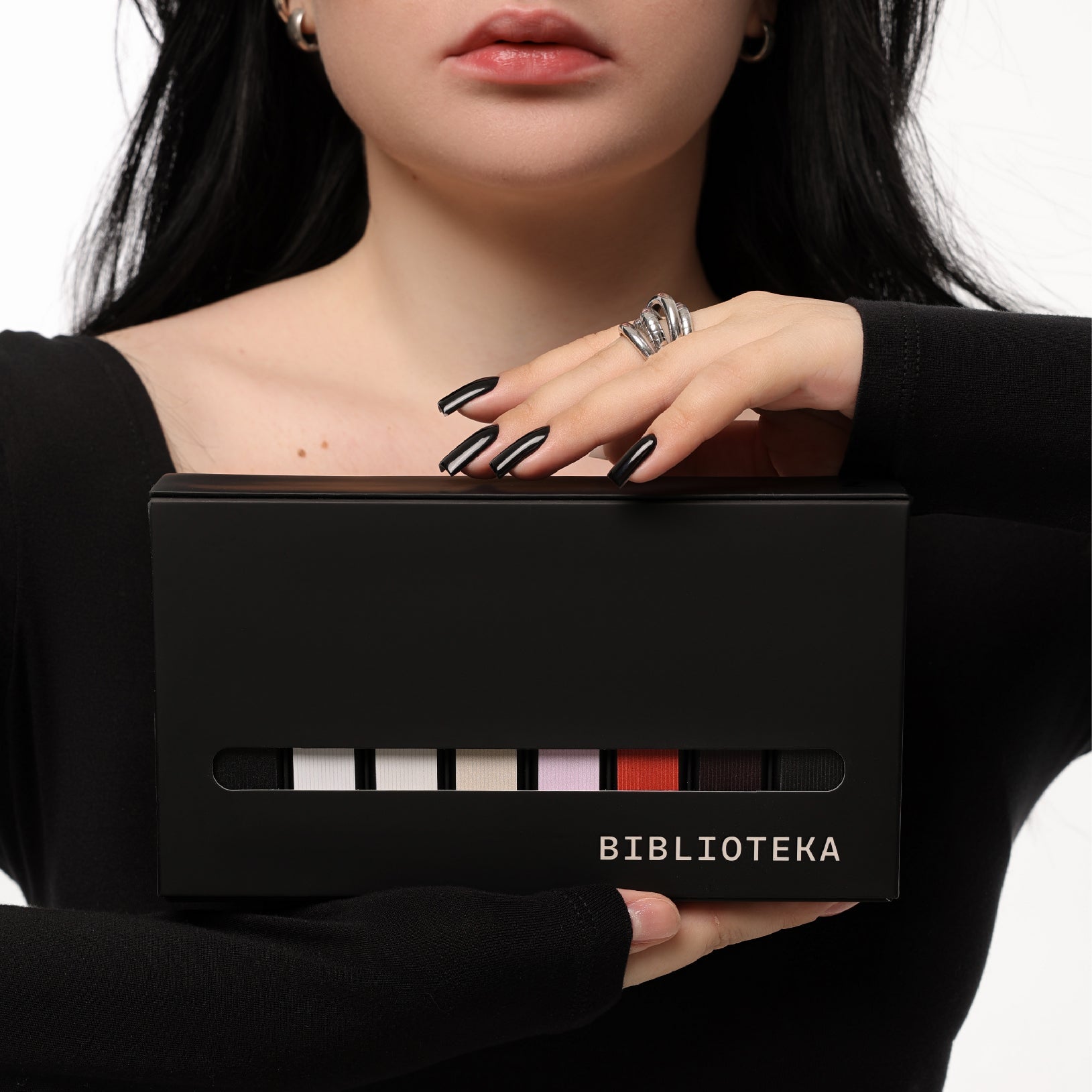 BASIS – the first gel polish collection by BIBLIOTEKA, combining 8 universal shades essential for every nail professional. From classic black to nude tones, the palette is designed so that each color becomes indispensable for your clients.
